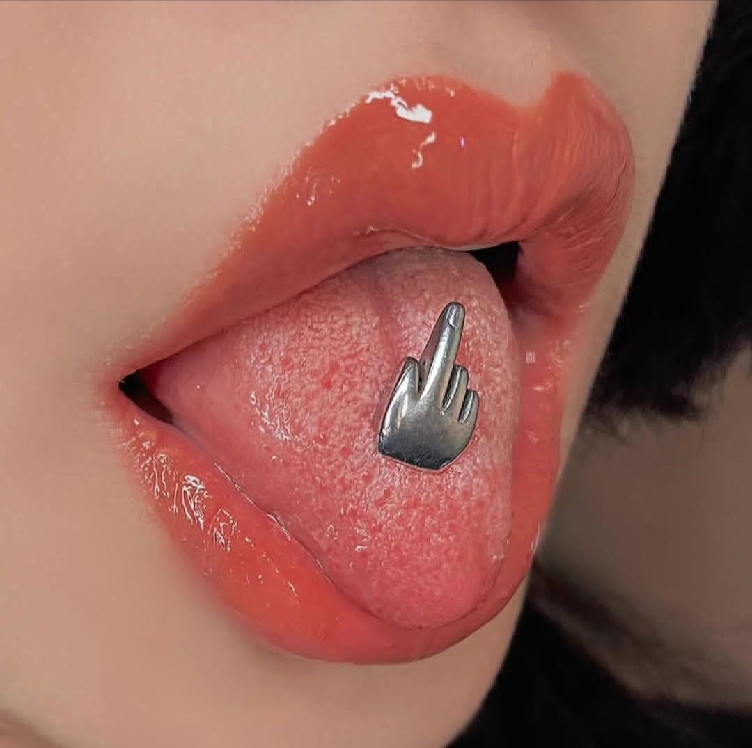 پیرسینگ زبان سیلیکونی یکسر نگین