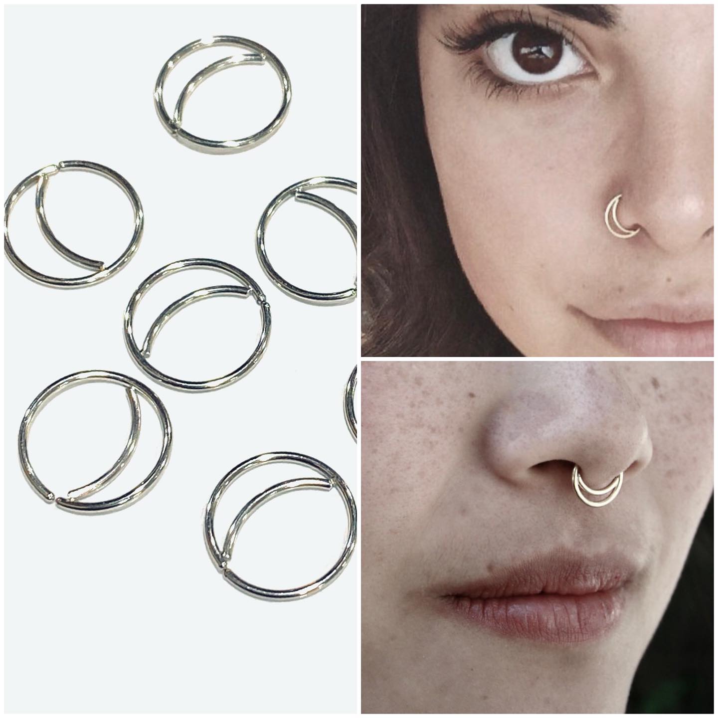 Double Hoop Nose Stud Moon Septum Earring Screw Hanger Tragus Helix Piercing