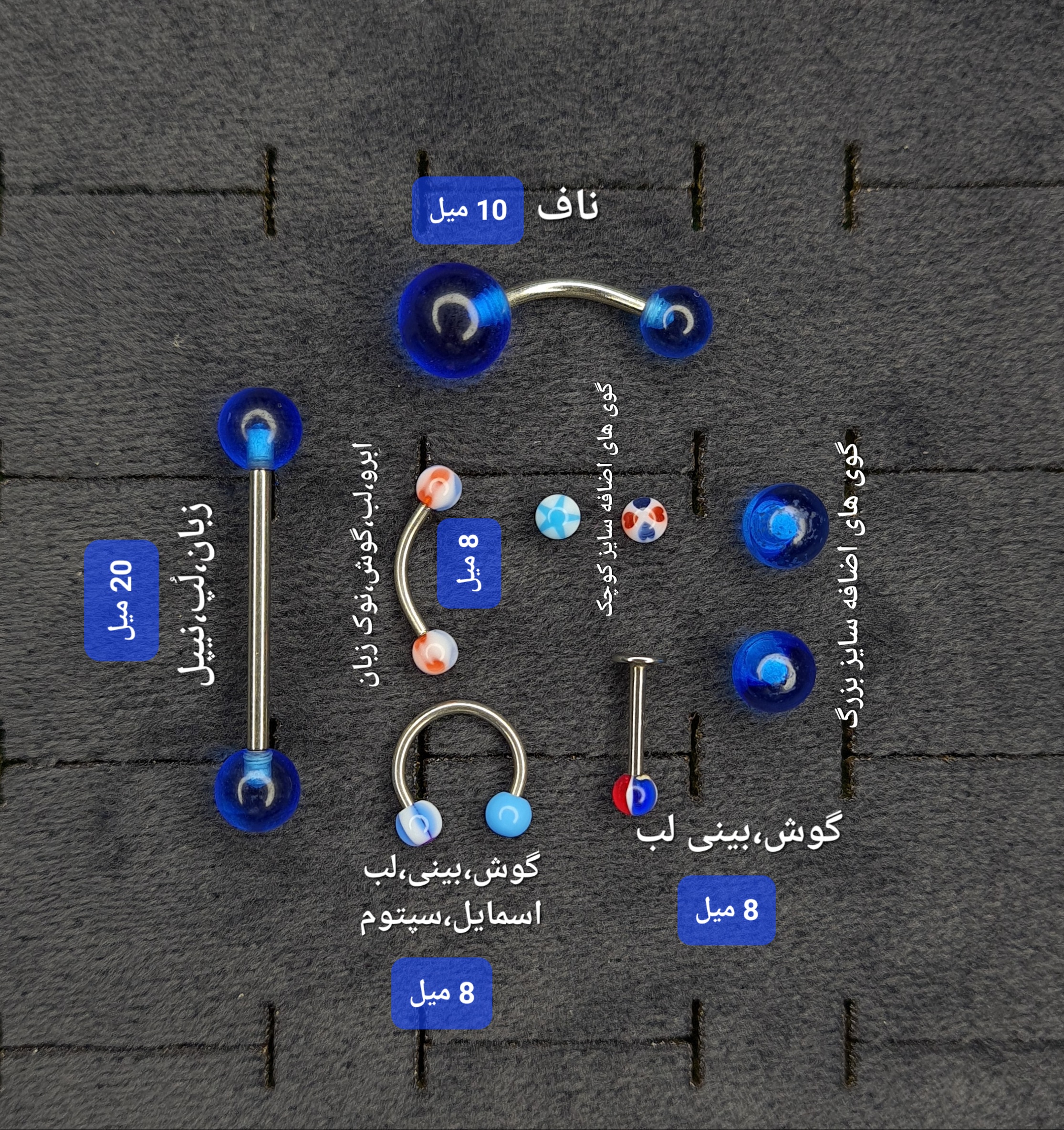 بسیار کاربردی،شامل پنج مدل پیرسینگ و چهار گوی اضافه.