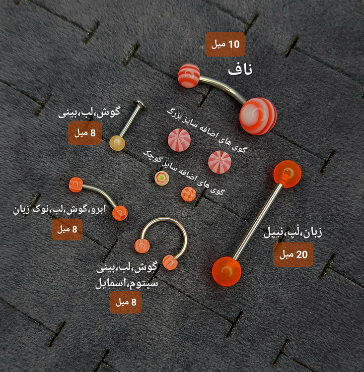 بسیار کاربردی، شامل پنج مدل پیرسینگ و چهار گوی اضافه.