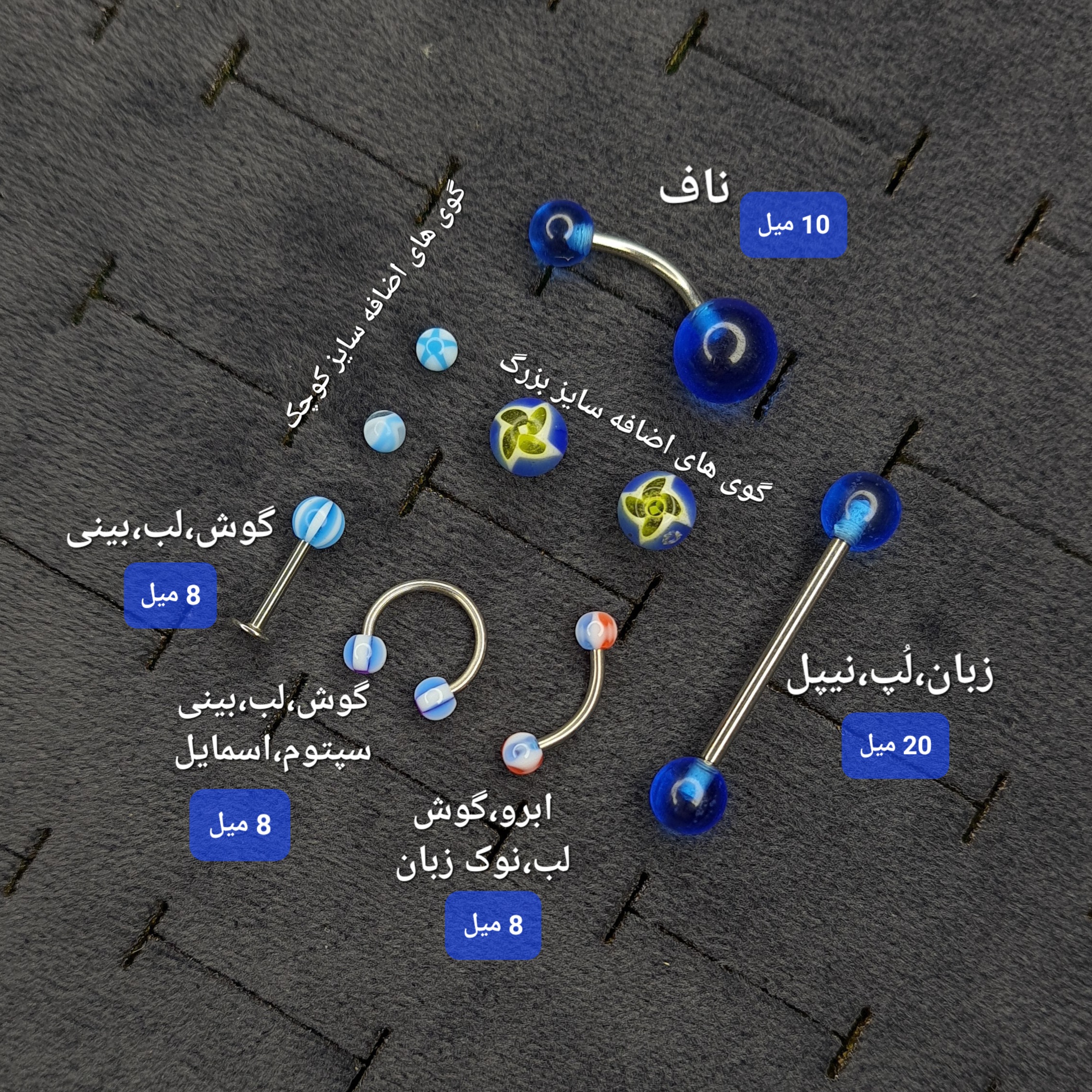 بسیار کاربردی، شامل پنج مدل پیرسینگ و چهار گوی اضافه.